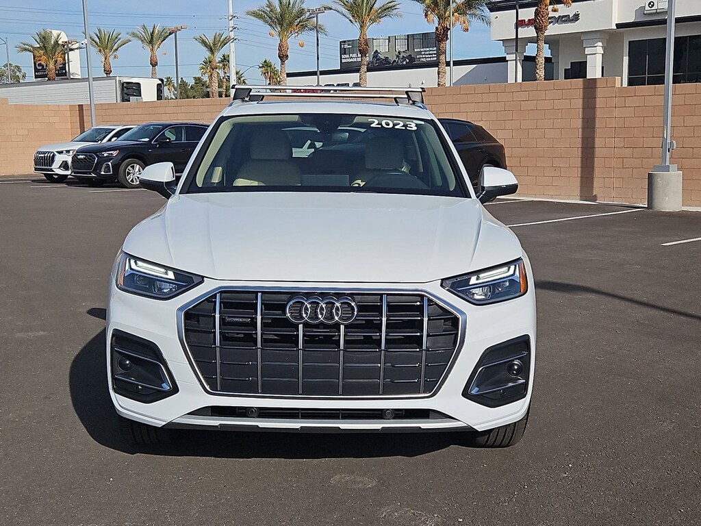 Thank you for your interest in one of Audi Las Vegas's online offerings. Please continue for more information regarding this 2023 Audi Q5 Premium with 10,430mi. This Audi includes: GLACIER WHITE METALLICPANORAMIC SUNROOFPanoramic Roof Generic Sun/Moonroof Sun/Moonroof AUDI BEAM-RINGSGRAY-BROWN BIRCH NATURAL WOOD INLAYSWoodgrain Interior Trim WHEELS: 19" 5-ARM-PYLON DESIGN W/MATTE FINISHTires - Front Performance Aluminum Wheels Tires - Rear Performance CONVENIENCE PACKAGEKeyless Start HD Radio Mirror Memory Heated Steering Wheel Seat Memory Hands-Free Liftgate Satellite Radio Power Door Locks Keyless Entry Power Folding Mirrors Requires Subscription Remote Trunk Release PRIVACY TRUNK COVER (PIO)Cargo Shade *Note - For third party subscriptions or services, please contact the dealer for more information.*Gone are the days of SUVs being the size of a tank and handling like one. This Audi Q5 is a perfect example of how SUVs have evolved into vehicles that are as refined as they are rugged. Pull up in the vehicle and the valet will want to parked on the front row. This Audi Q5 Premium is the vehicle others dream to own. Don't miss your chance to make it your new ride.Enjoy the comfort and safety of this AWD Audi Q5 Premium equipped with many standard features found on other vehicles as optional equipment.